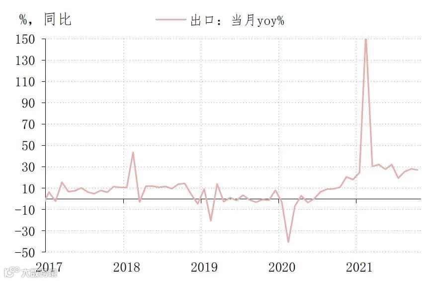 出口绝对额维持了相对较高景气:出口链条在2021年维持了相当高的景气,体现在出口绝对额上维持~20%+同比增速。背后主要是全球疫情复苏的供需错配,中国比全球提前从疫情中恢复过来,因此成为了全球生产国。但受限于海外部分供给的缓慢复苏,以及海外需求复苏的斜率放缓,Q4出口就已出现价增量跌,金额尚在高位。