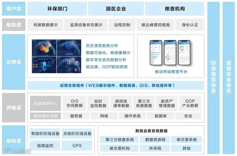 采用典型的物联网架构,从感知、传输和应用层,为用户提供整体解决方案。系统将依托皖仪自主研发的低碳监测平台、温室气体监测仪器,对前端感知、网络传输、中心系统等进行统一管理,为业务管理提供技术支撑。