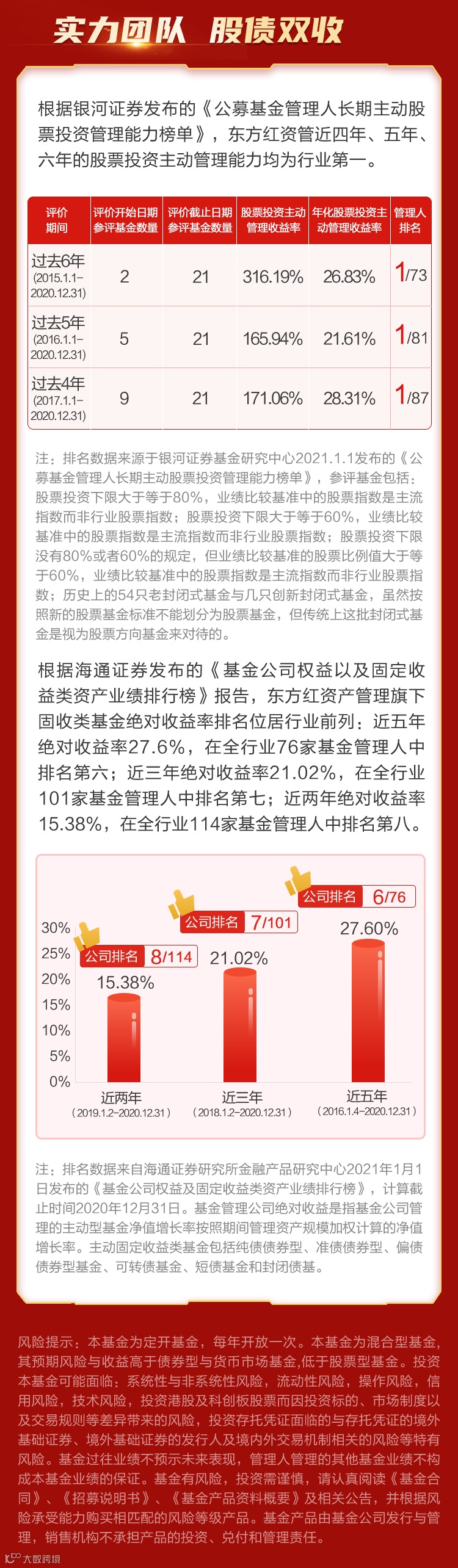 风险提示:本基金每三年为一个运作周期,每年开放一次,封闭期内不办理申购、赎回及转换业务。本基金为混合型基金,其预期风险与收益高于债券型与货币市场基金,低于股票型基金。投资本基金可能面临:系统性与非系统性风险,流动性风险,操作风险,投资港股及科创板股票而因投资标的、市场制度以及交易规则等差异带来的风险,投资存托凭证面临的与存托凭证的境外基础证券、境外基础证券的发行人及境内外交易机制相关的风险等。基金管理人的股东对本基金的发起认购,并不代表对本基金的风险或收益的任何判断、预测、推荐和保证。基金过往业绩不预示未来表现,管理人管理的其他基金业绩不构成本基金业绩的保证。基金有风险,投资需谨慎,请认真阅读《基金合同》、《招募说明书》、《基金产品资料概要》及相关公告,并根据风险承受能力购买相匹配的风险等级产品。基金产品由基金公司发行与管理,销售机构不承担产品的投资、兑付和管理责任。