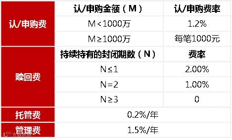 从赎回费来看,基金产品设计是为了引导客户至少投资三年,如果客户中途开放时赎回,持有一期赎回费2%,持有两期赎回费1%,持有三期就没有赎回费。从产品设计出发点看,还是希望三年及三年以上资金配置。