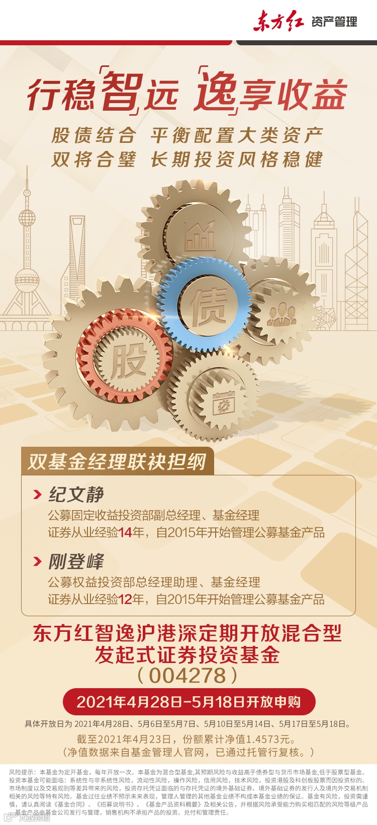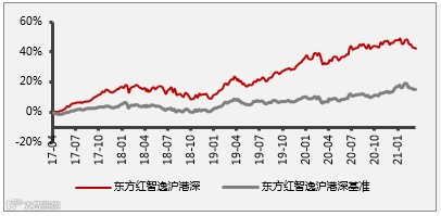 截至2021年3月31日,东方红智逸成立以来净值增长率为43.92%,同期业绩比较基准收益率为14.27%。