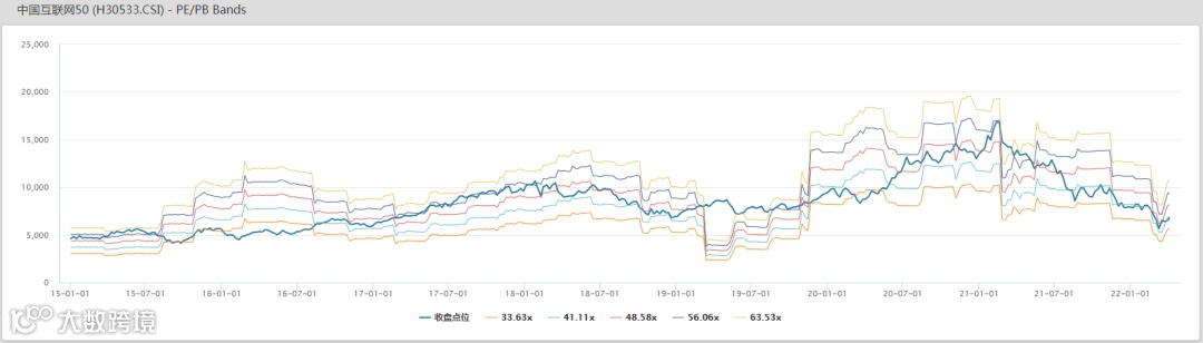 (图六:中国互联网50指数上市以来PE(TTM) Band)