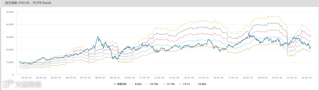 (图五:香港恒生指数上市以来PE(TTM) Band)
