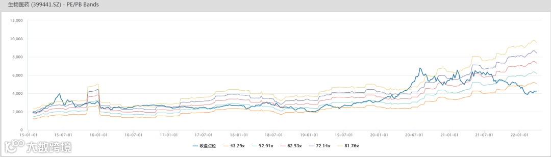 (图七:生物医药指数上市以来PE(TTM) Band)