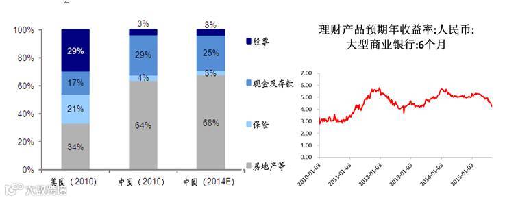 从居民财富向权益市场转移的趋势来看,与国际市场相比,我国居民财富的配置呈现房地产比例过高以及股票资产占比过低的特征。而从人口结构与房地产市场本身的运行规律来看,房产的投资预期收益显然经过了最黄金的时期。此外,货币宽松环境下泛债权收益率的竞争力变弱。