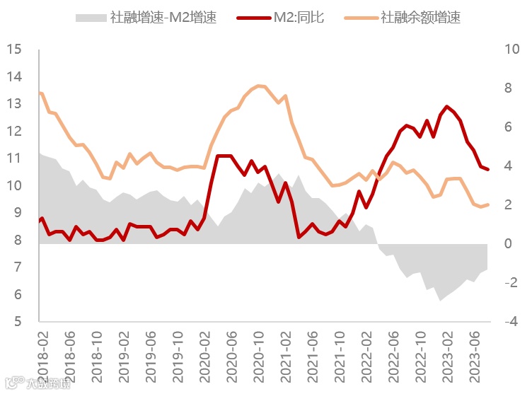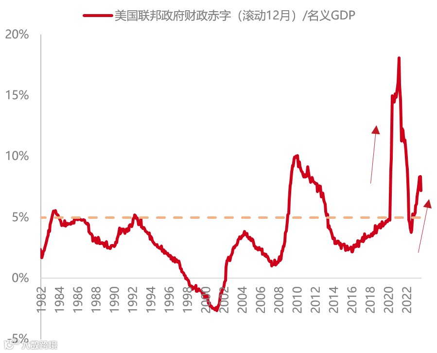 此外,中国宽货币尚未传导至宽信用,体现在社融增速相较M2增速的裂口仍然为负。美国方面,紧信用迟到。美联储的加息周期自2022年3月就已经开启,但持续不断的财政扩张,包括对居民个税调整、对企业通过产业补贴吸引制造业回流等流量层面的宽财政,在一定程度上抵消了货币紧缩的影响,使得紧缩政策效果还未完全显现,因此经济放缓斜率比此前预期更慢。但迟到并不意味着缺席,中国稳增长政策将开始发挥作用,而美国银行业信贷标准持续收紧也将约束美国增长,进而可能带来中美资产收益率的收敛。