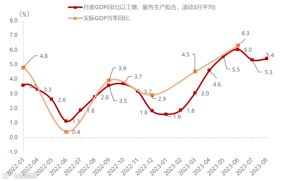 图1:以高频经济数据拟合的月度GDP增速在三季度放缓