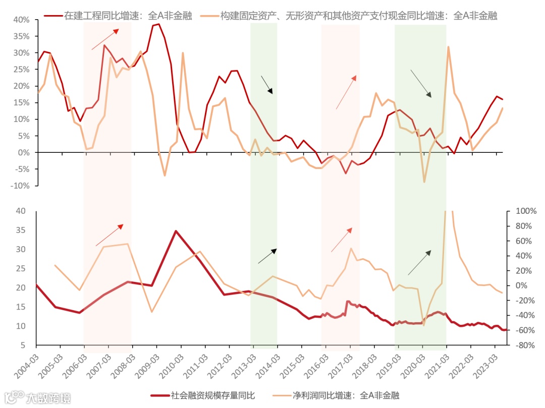 如果将盈利周期和产能周期进行对照,盈利“强回升”周期往往伴随着产能扩张周期,比如2006-2007年、2016-2017年,供需基本同步。而2013年和2019年的盈利“弱回升”周期中,A股并没有开启全面的产能扩张周期,因为这两次A股的资本开支仍处于相对高位,产能并未实现“出清”。但本轮周期则存在供需错配:自2020年下半年开始企业普遍认为走出困局,进而开启新一轮产能扩张,但受三年疫情扰动,需求未能有效兑现。尽管当前企业盈利已接近底部,但产能周期处在相对的高位,很多行业存在供需错配的情况。预计A股整体短期难以出现量价齐升的盈利弹性,更多是结构性机会。