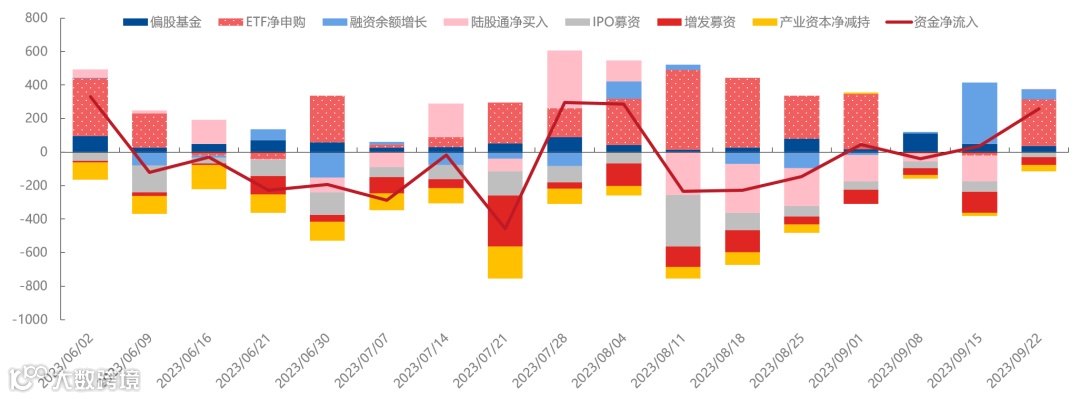 “活跃资本市场”相关政策陆续落地,降低印花税、提高减持的门槛和要求、收紧IPO和再融资,使得今年年内的资金需求将降低。如果后续还有推动增量资金的措施落地,将会明显改善A股的资金平衡表,可能从三季度的净流出转变为净流入。