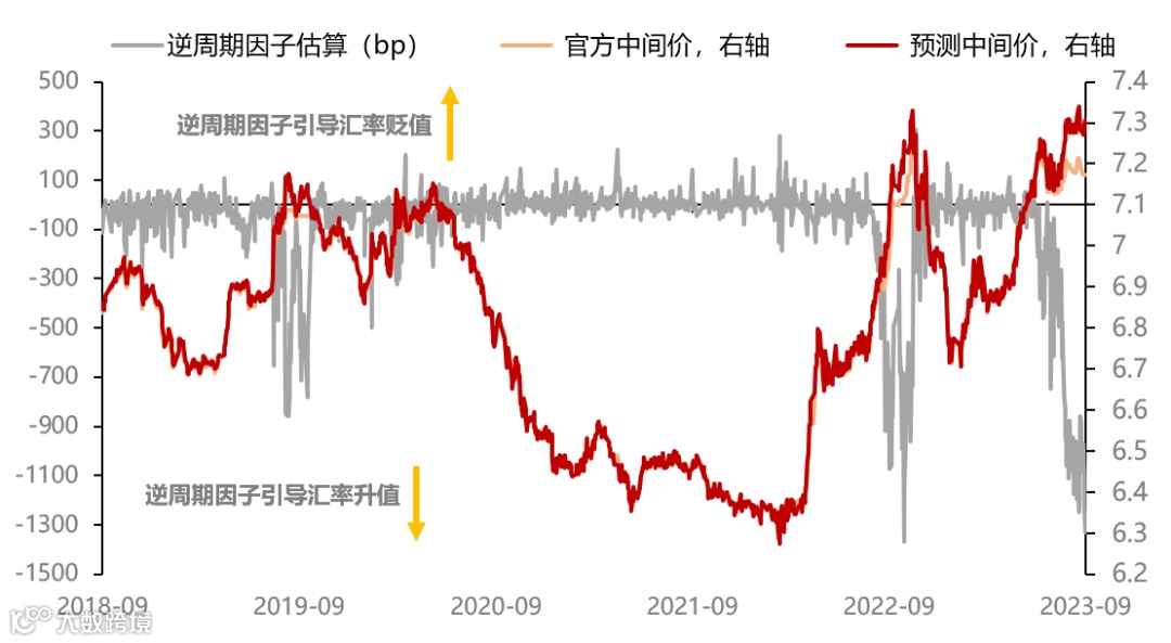 从过去几年来看,市场低谷期往往伴随着人民币汇率的调整。今年二季度以来,美元兑人民币汇率与沪深300的相关系数高达-0.8,汇率贬值A股承压。此外,央行已出手稳定汇率,近期官方中间价vs预测中间价的价差反映出明显的逆周期因子,已经逼近去年10月的峰值,央行9月15日下调金融机构外汇存款准备金率,意在增加市场上的外汇供给,预计人民币汇率继续快速贬值的概率不大。