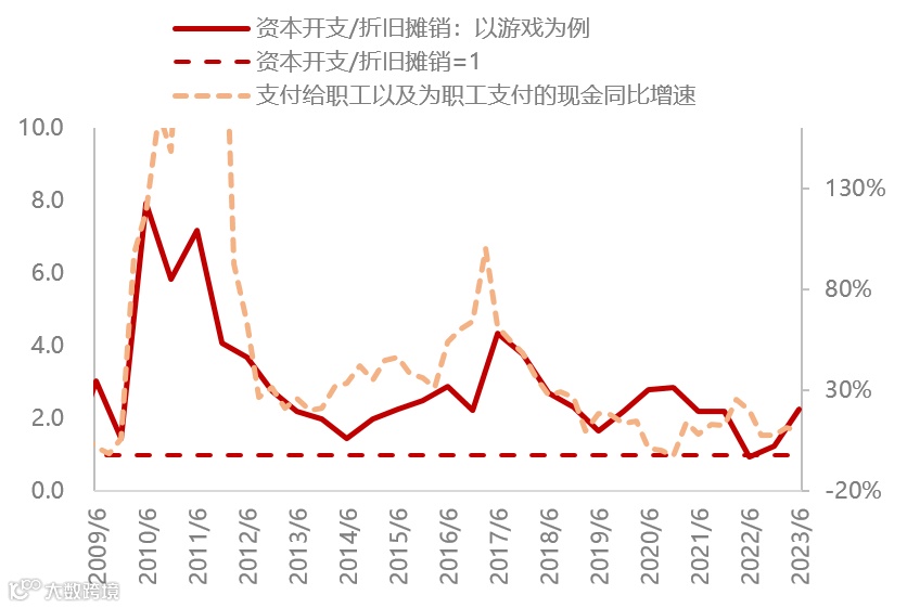 企业在扩产阶段往往先经历资本开支增长,随后逐渐形成在建工程、固定资产和无形资产等生产性资产,而收缩阶段也先伴随资本开支下降,因此资本开支是反映企业建产能和去产能的先行指标。可以以资本支出/折旧摊销的比例和购建固定资产、无形资产和其他资产支付现金同比增速,来衡量企业资本支出力度(轻资产行业看职工薪酬支付现金)。行业供给出清相对充分时,资本开支/折旧摊销往往已降至1左右甚至以下,基本接近投入与折损的动态平衡,购建固定资产现金增速持续为负,产能处于相对较低水平;此时伴随着需求侧边际改善,企业可能出现供不应求和产能利用率上升,资本开支增速拐头转正,经营指标全面改善。