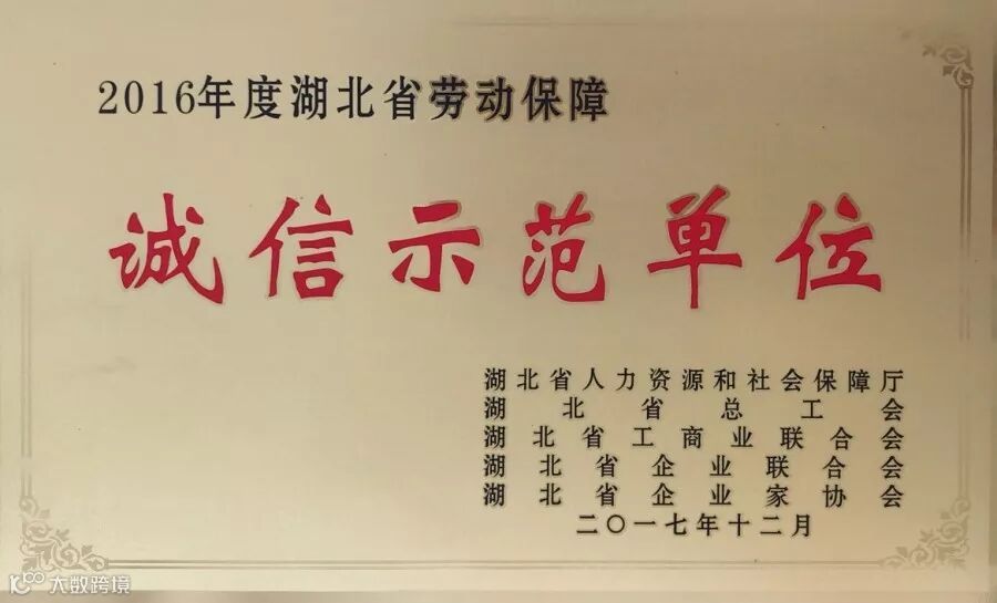 ▲ 二0一六年度湖北省劳动保障诚信示范单位