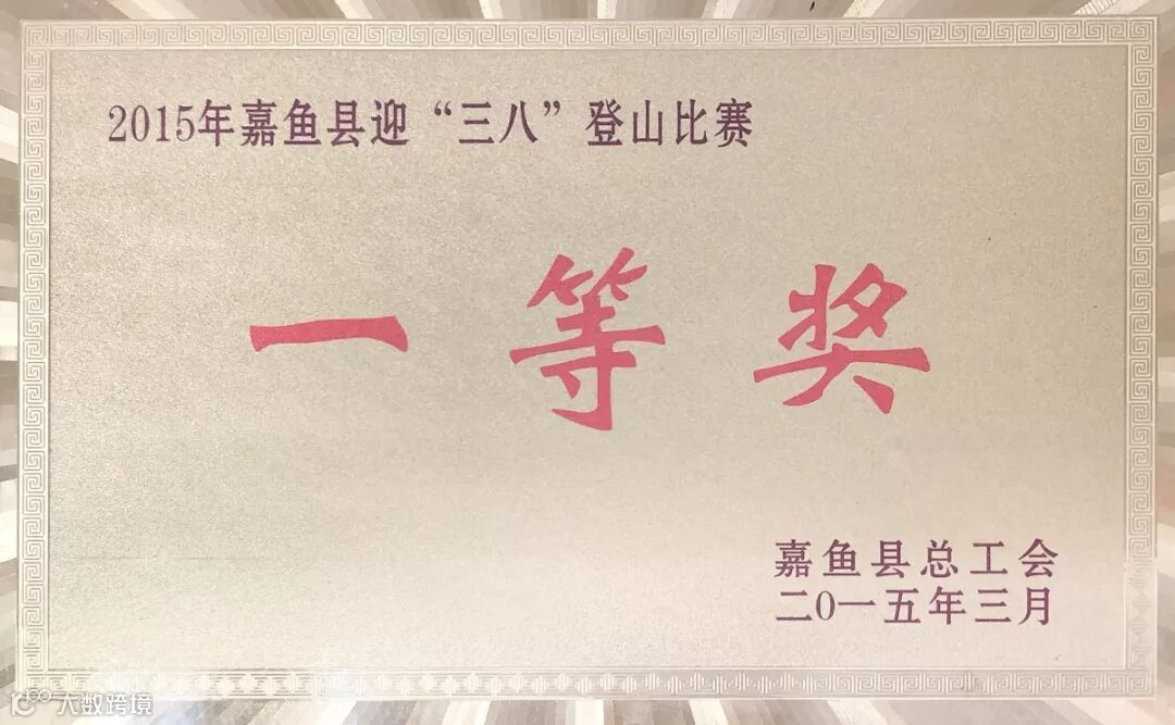 ▲ 二0一五年嘉鱼县迎“三八”登山比赛一等奖