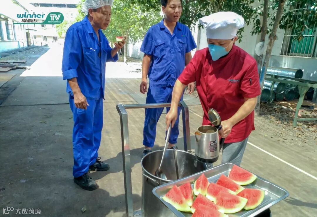 为保证酷暑天气里一线员工的身体健康及生产安全, 25号下午,嘉鱼稳健人力资源部后勤工作人员分别到一车间、二车间、设备部、仓库等单位为坚持在一线岗位高温工作的员工送去了的绿豆水和西瓜等防暑降温物品,这一举措充分体现了嘉鱼稳健“以人为本”的理念,也体现了公司工会对员工的关心和爱护,在提升员工凝聚力和向心力的同时能更好地为安全生产保驾护航!