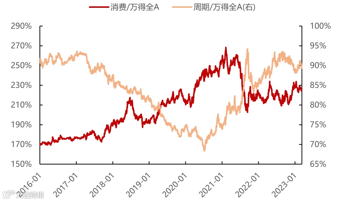 图29:消费和周期的背离在2016年之后较为明显