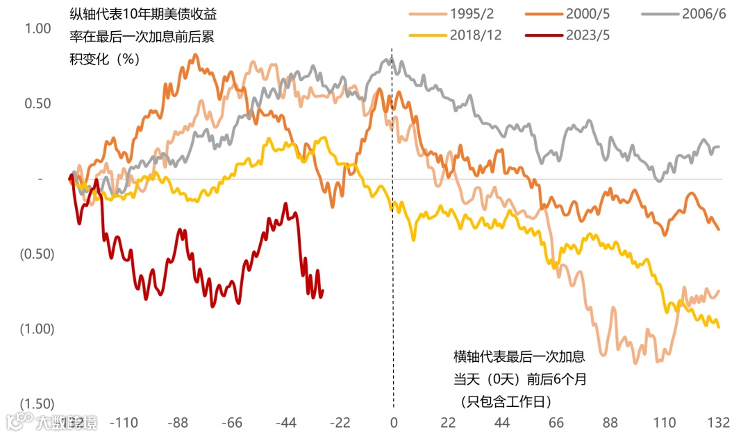 图33:美联储暂停加息前后美债收益率表现