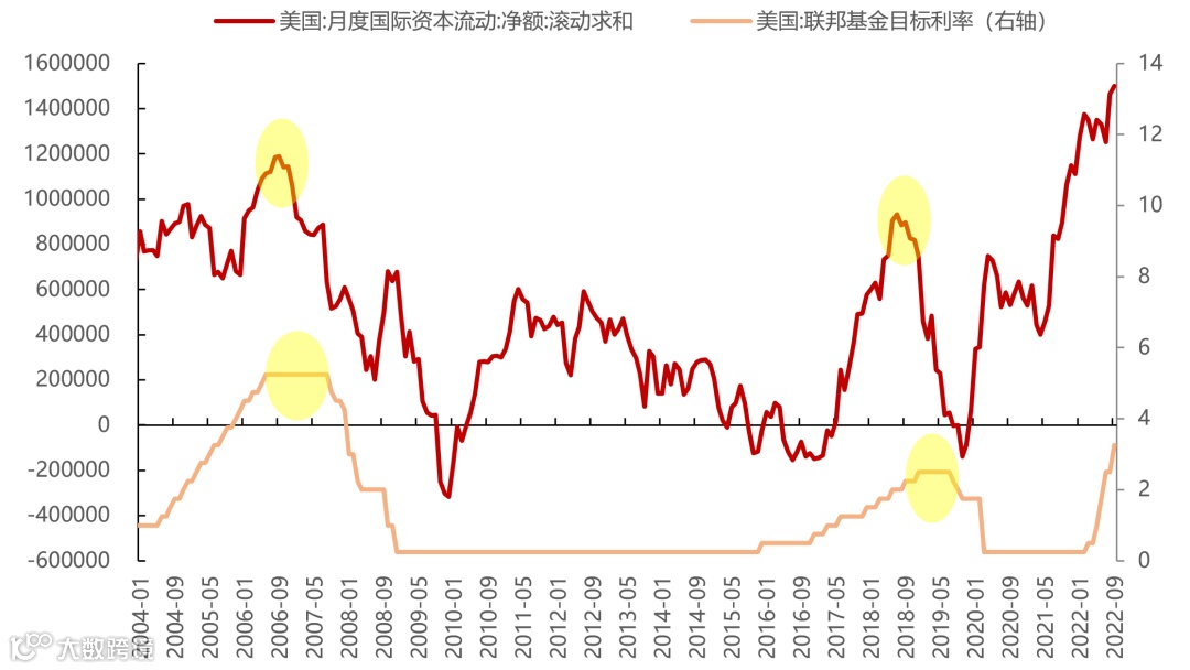 图24:前两轮美国加息见顶后,国际资本持续净流出美国