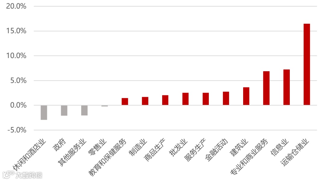 图10:各行业相比疫情前的就业人数变化率
