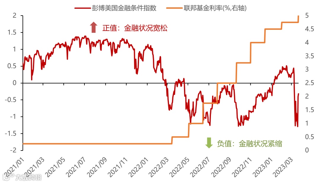 近期频发的银行危机替美联储收紧了金融条件,也弱化了美联储大幅紧缩的必要性。美国金融条件指数在3月初出现了快速收紧,由于美联储遏制通胀的主要途径是“货币政策→金融条件→实体经济总需求”,因此金融条件的收紧也减少了美联储进一步大幅紧缩的必要性。