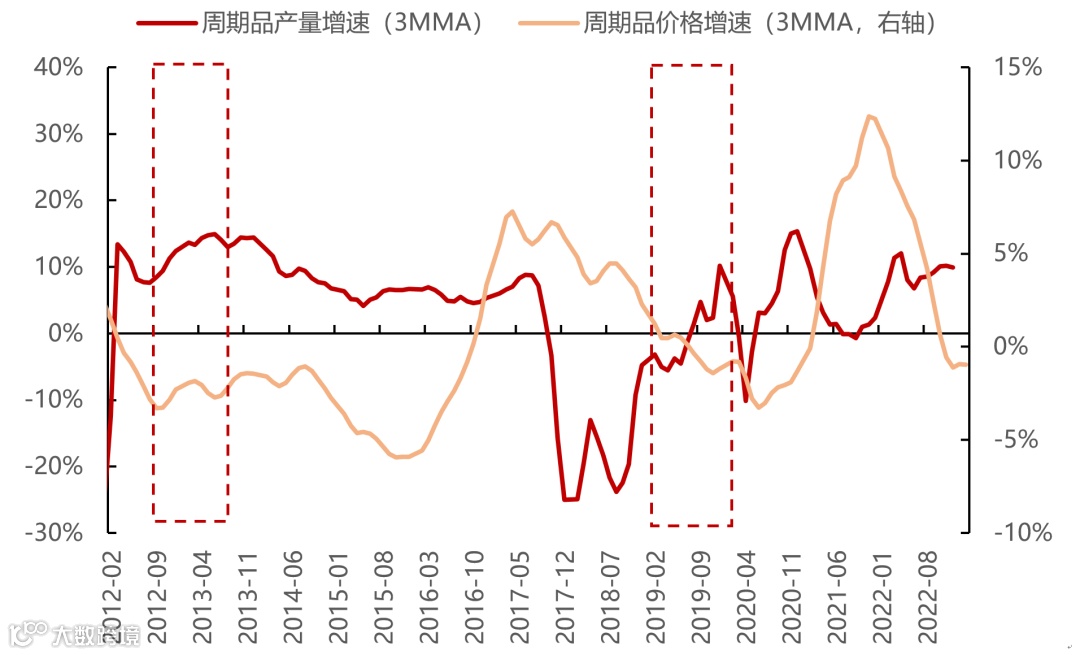 图31:2013与2019年周期品量领先价格上行,