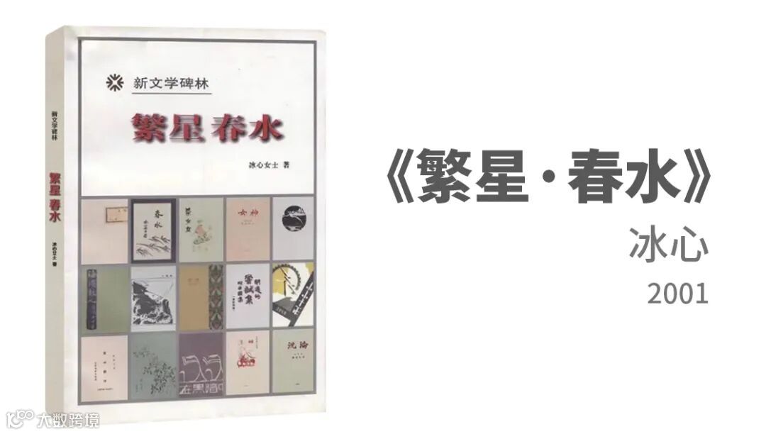 冰心的代表作,被人们公认为“小诗最高成就”的两部诗集《繁星》、《春水》,以母爱、童真和自然为主题,传递她关于爱的哲学——“有了爱,就有了一切”。尤其在《繁星》中,冰心把母爱视为最美好的东西:“这些事——是永不漫灭的回忆;月明的园中,藤萝的叶下,母亲的膝上。”“小小的花,也想抬起头来,感谢春光的爱——然而深厚的恩慈,反使她终于沉默。母亲呵!你是那春光么?”母爱是生命的源泉,孕育万物生长,让世界朝着光明走去,最终又成为一切爱的归宿。