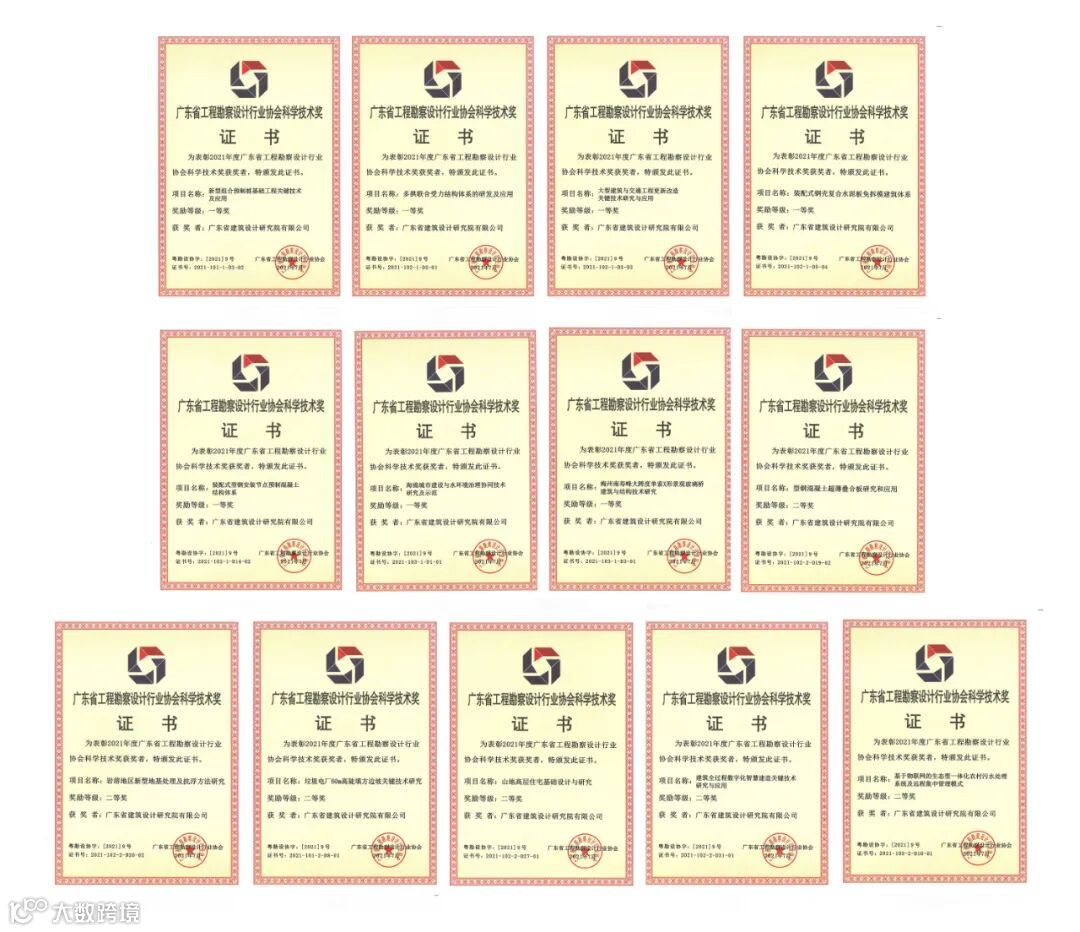 近日,2021年广东省工程勘察设计行业协会科学技术奖评选结果发布,公司荣获7项一等奖、6项二等奖。