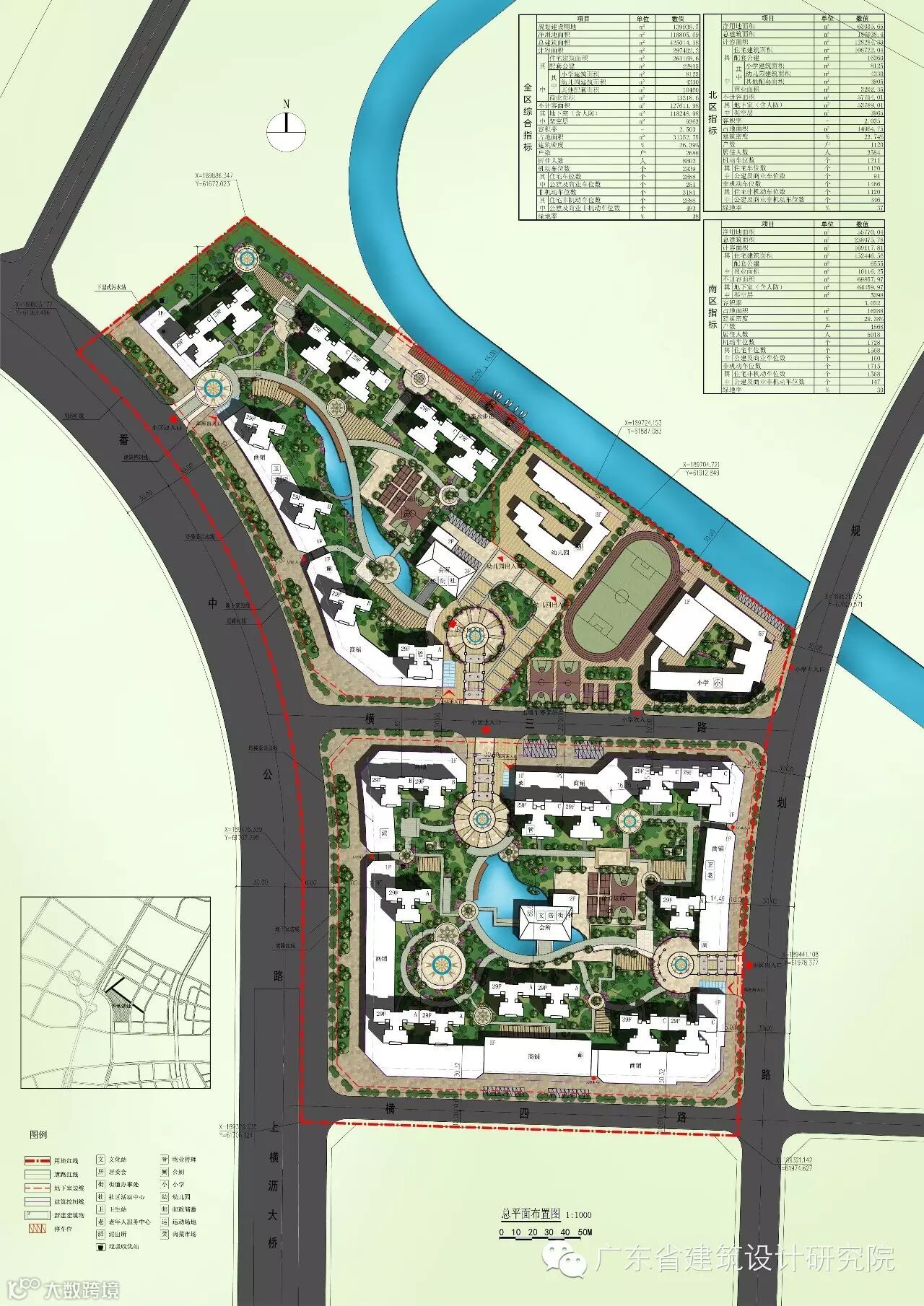 该项目规划建设15栋24座高层住宅(住宅户型均为四户一单元,由60、80、100、120平方米这四个面积区间的户型组合而成)及其公建配套和局部商业,还包括3班托儿所、9班幼儿园、18班小学,食堂、肉菜市场以及村委等独立公建,分南北两个组团布置。裙楼商铺层高4.95m,塔楼首层为4.95m,标准层为3m,总高度控制在100m以下。幼儿园高度为12.75m,小学高度为21.75m,村委高度为17.85m,肉菜市场高度18.2m。