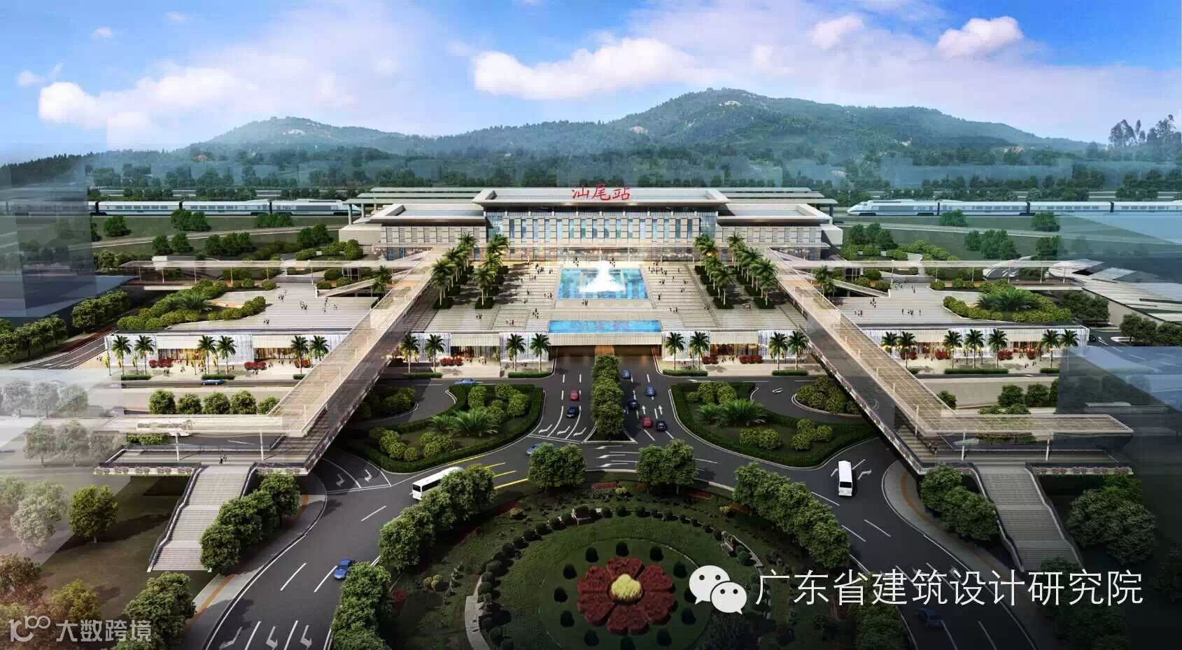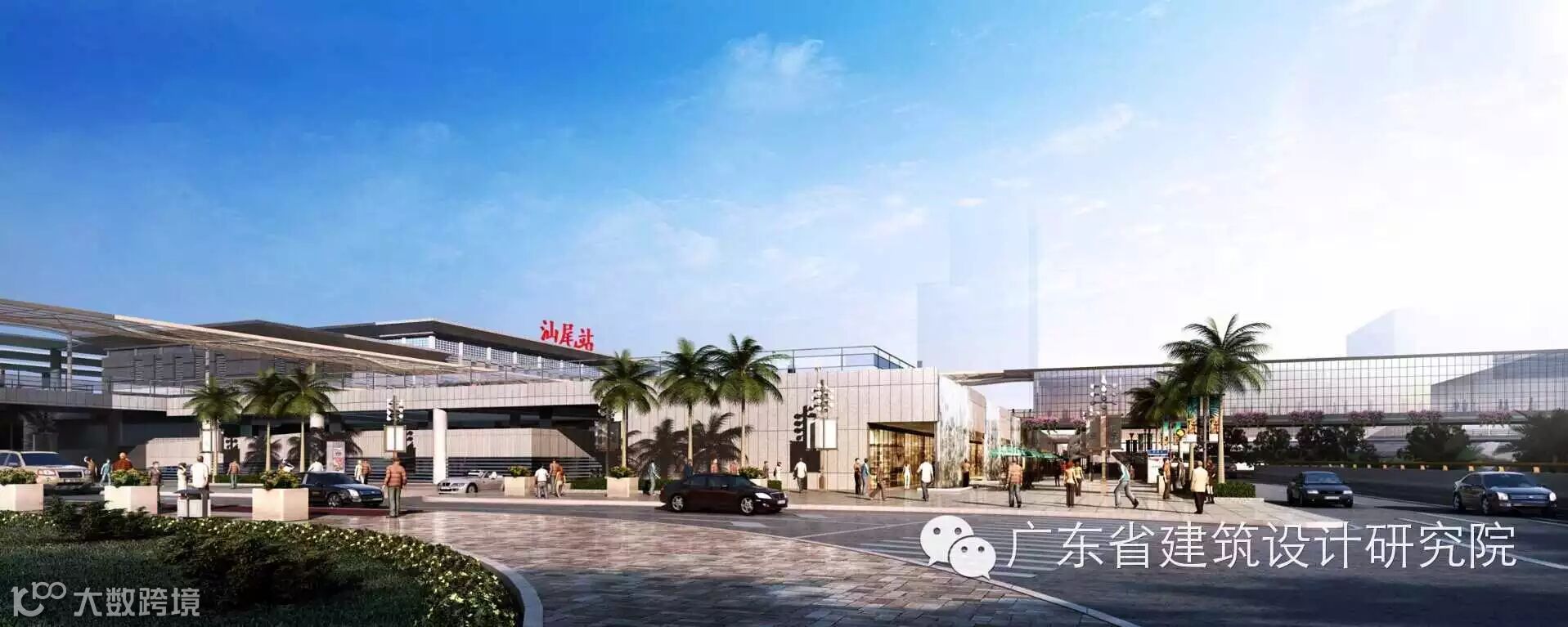 站前广场设计突出“汕尾火车站”的城市地位,提供完善的综合客运交通转换功能,同时结合汕尾地理人文特色,通过建筑空间与景观的交融,构建集文化、休闲、配套服务功能于一体的“城市客厅”。