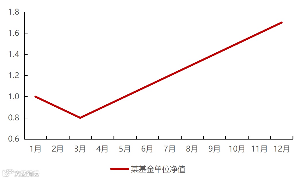 假设有一只基金,在一年的十二个月里,净值呈现先跌后涨的走势。