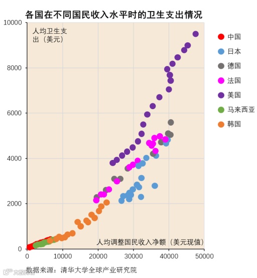 中国医疗市场的巨大增长潜力,不仅仅是因为中国拥有14亿人口,经济增长与人口老龄化趋势构成了推动中国医疗市场快速增长的双“发动机”。根据清华大学全球产业研究院的分析结果,以美、欧、日、韩及马来西亚等国的经验来看,伴随国民收入的提升,人均医疗支出也将随之稳步提高,对医疗服务的品质要求也会持续提高。