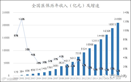 2018 年全国医保合计收入 21090 亿元,同比增长 11%;全国医保合计支出 17608 亿元,同比增长 13%;