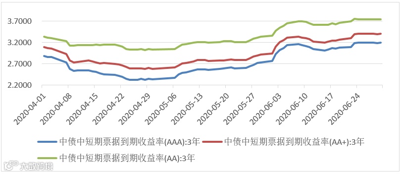 图3:二季度三年信用债收益率走势图