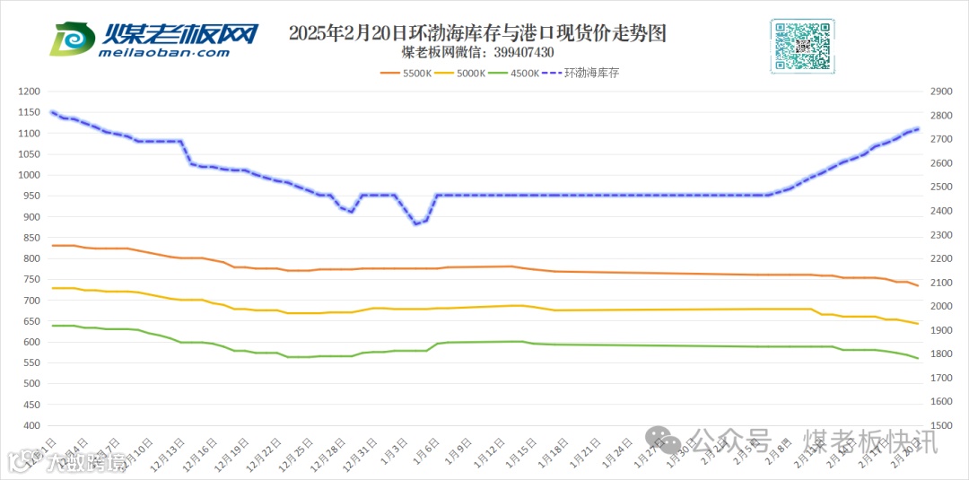 海湾煤矿:2025年2月21日上午11点30起现金售价:面煤↓15,籽、块↓10