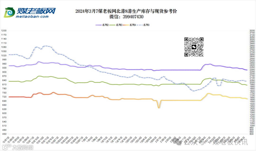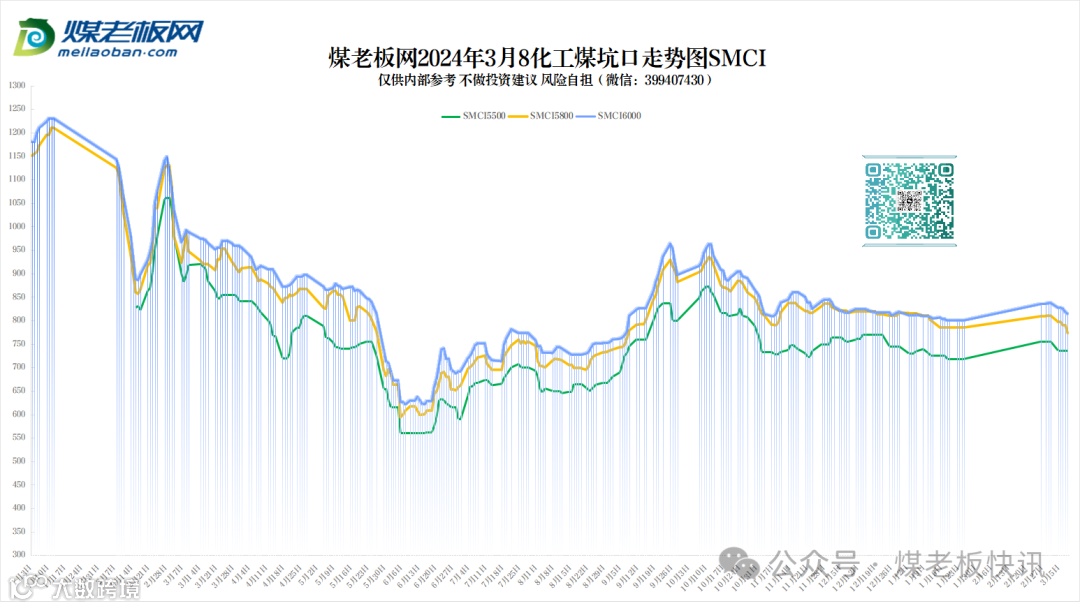 截止3月8日上午,据追踪的主流煤矿来看,价格变动煤矿10家左右(含榆神、府谷、横山、内蒙):全部持跌10~70元/吨(仅1家煤泥上涨15元/吨,其余均跌,面煤跌幅10~15元/吨,籽、块煤主要跌幅10~40元/吨,个别高卡热值矿块煤单次跌幅70元/吨)。今日降价煤矿对比昨日数量减少,煤矿价格延续下跌中,调降煤矿主要神木、内蒙为主,榆阳区域调价煤矿较少,竞拍煤矿涨跌互现,部分矿块煤下跌10元/吨;府谷个别煤矿籽煤下跌30元/吨,块煤下跌15元/吨,横山价格行情趋稳,内蒙区域煤矿涨跌调价频繁,波动幅度5~20元/吨。