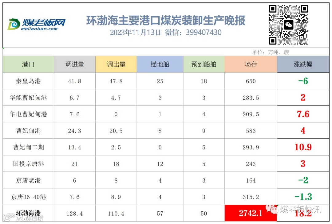 QL煤矿:2023年11月14日7点起现金售价:面煤↑10