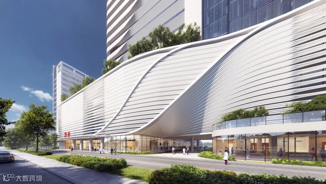 项目位于番禺区大石街群贤路,设计方案以“生命之峰·医学之巅”为概念,建筑形态以高耸峭立山峰为蓝本,力求将该项目打造成高楼林立下的绿色康养之园。项目呈 L 型塔楼形态,实现舒展、完善的城市空间界面。同时,在尊重其原有院区空间结构体系的基础上,将项目用地最大化利用,着重强调医疗功能空间的竖向发展逻辑,加强层与层之间竖向交通联系,打造出高效,紧凑的医疗空间格局。