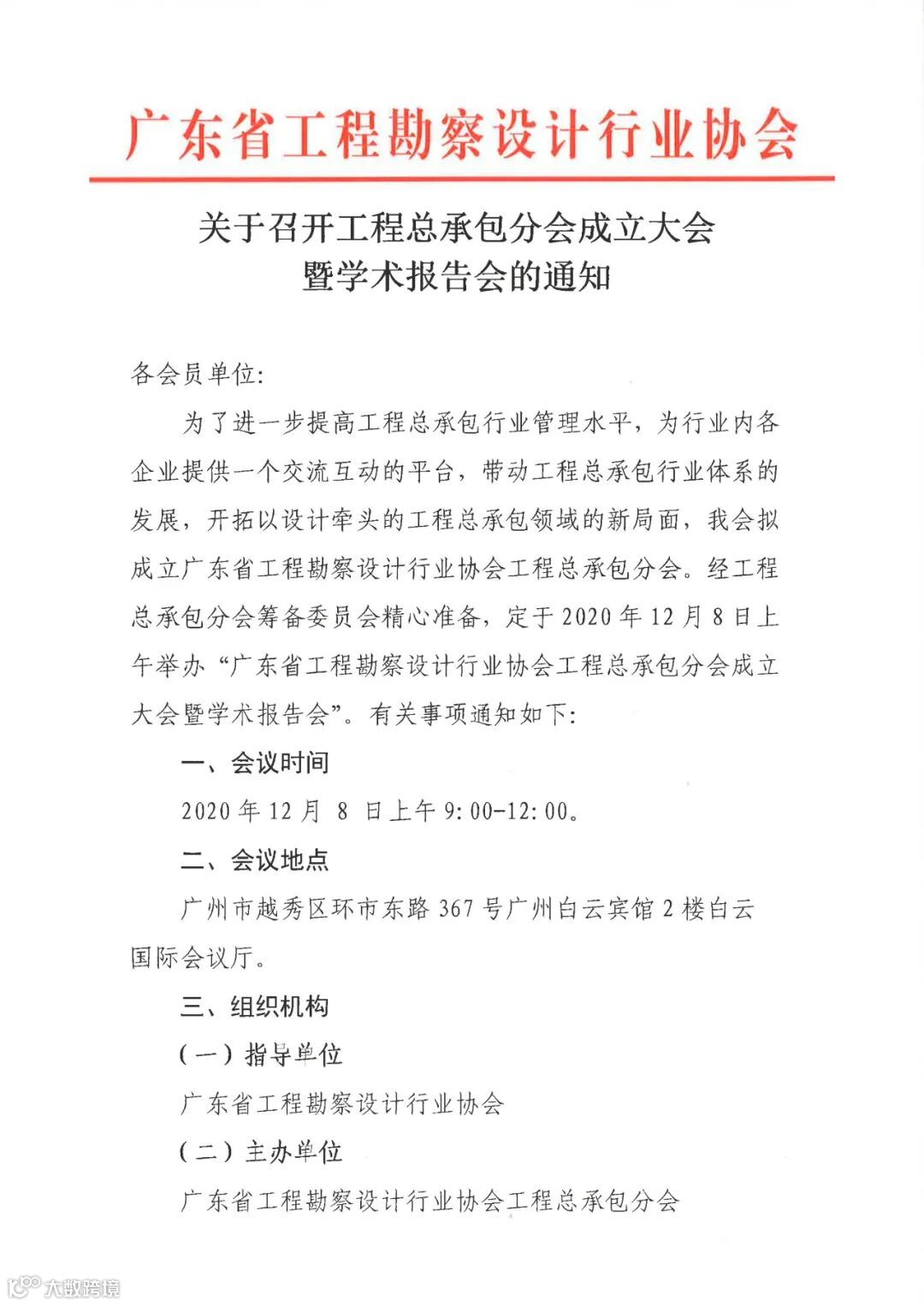 关于召开工程总承包分会成立大会暨学术报告会的通知