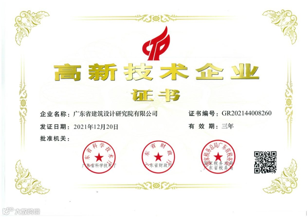 近日,广东省建筑设计研究院有限公司(以下简称省建院)取得广东省科学技术厅、广东省财政厅、广东省税务局联合颁发的高新技术企业证书。这是公司自2009年首次获得认定以来,连续5次通过国家高新技术企业认定。