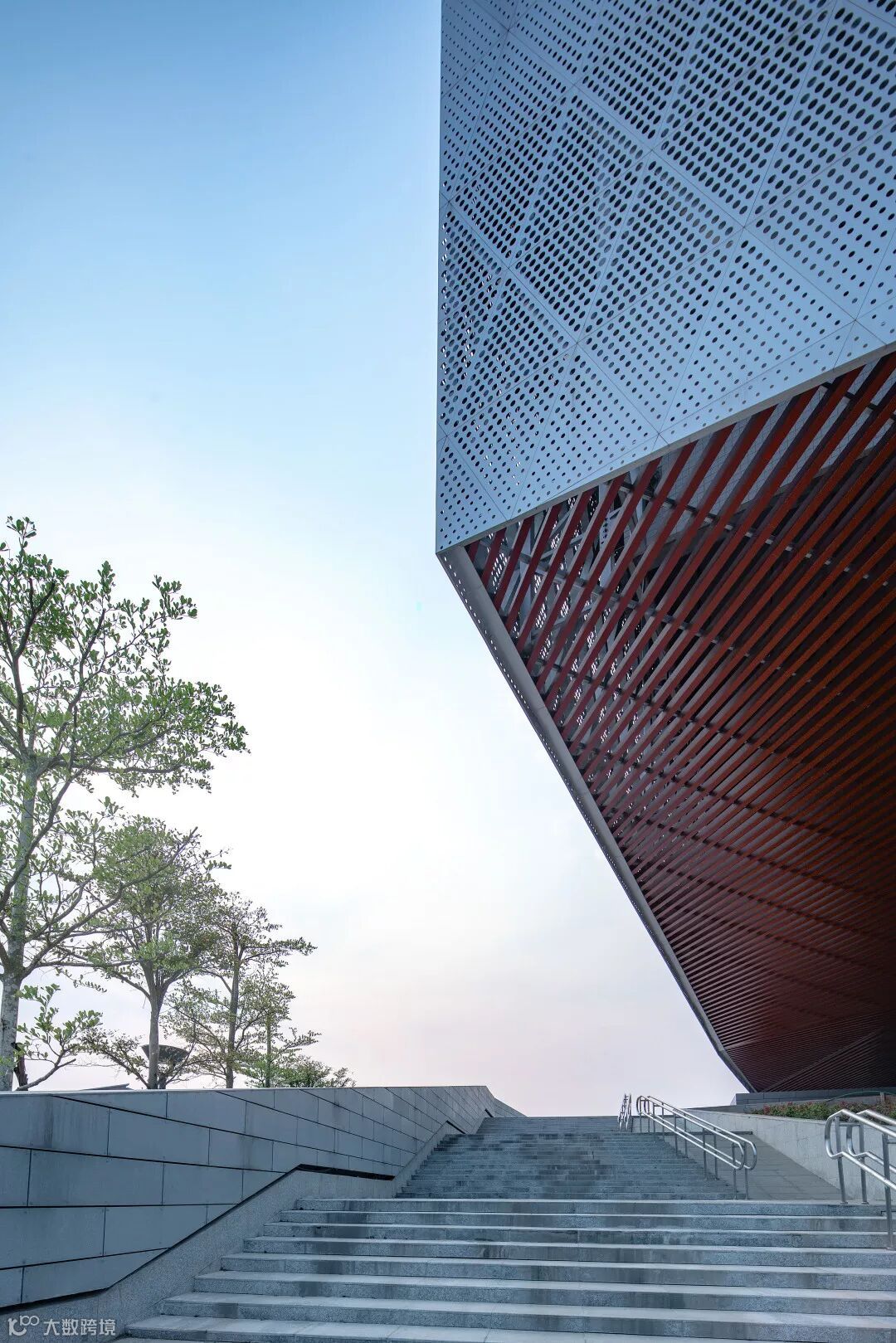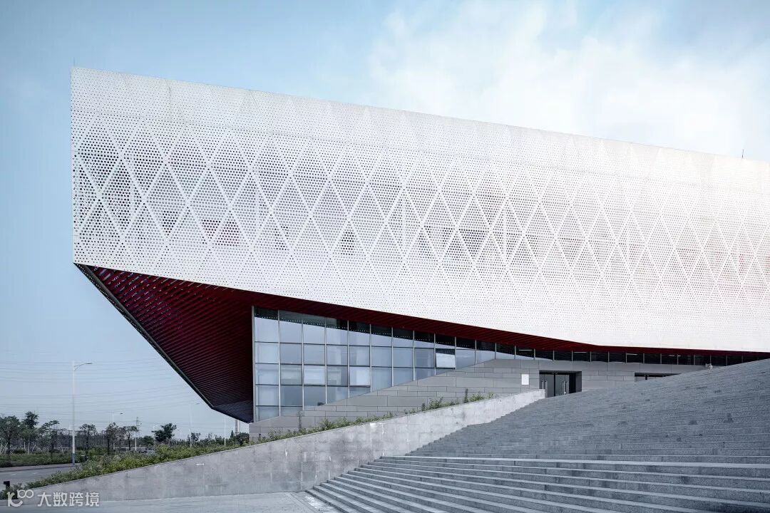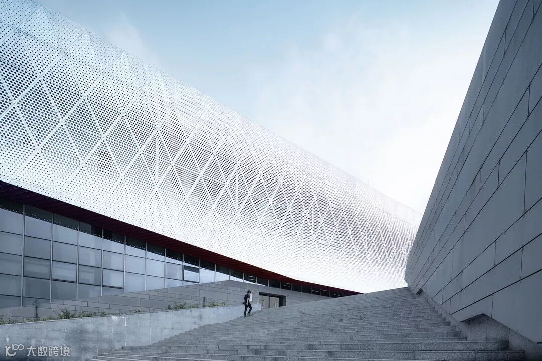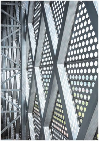 开放式穿孔铝板幕墙+Low-E中空玻璃+中密度水泥纤维板的外维护系统营造出鲜明的建筑形象。随着角度和光线的变化,建筑立面呈现出不同的质感和渐变效果,建筑形象充满动感和活力,同时也为室内空间营造出丰富的光影效果。