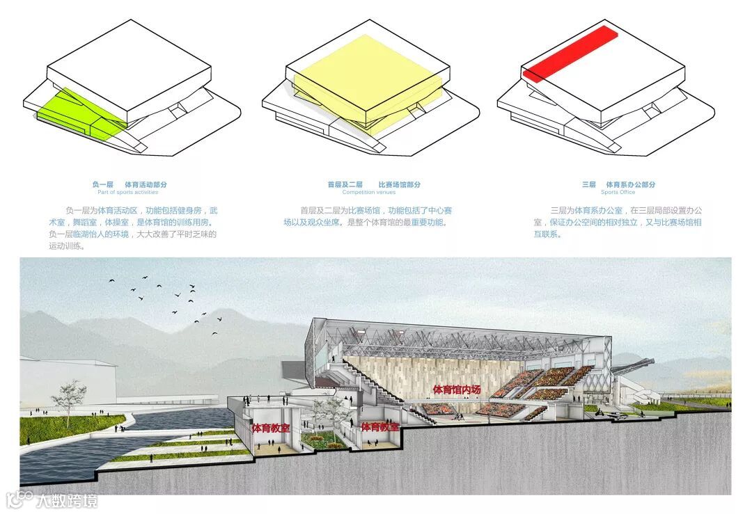 (3)在保证符合训练及标准赛事要求的同时,内场增设表演舞台,承担集会、展示、汇演等更多功能角色。