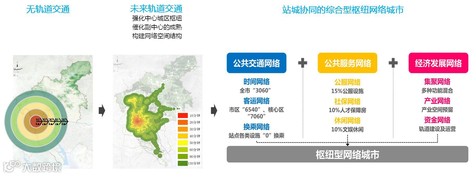 愿景一:构建“交通、服务、经济”三大网络叠加的枢纽型网络城市格局