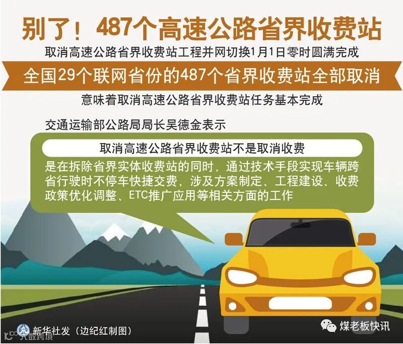 交通运输部公路局局长吴德金表示,取消高速公路省界收费站以后,全国高速公路实现“一张网”运行,将有效提高综合交通运输体系运转效率,缓解拥堵、改善人民群众出行体验,助力节能减排,降本增效。
