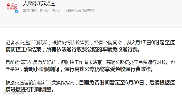至此之后关于高速通行免费到底截止什么时候不断有新的声音和猜测,从可能4月初到4月底到6月有不同的声音,当然也不乏有意的市场炒作。