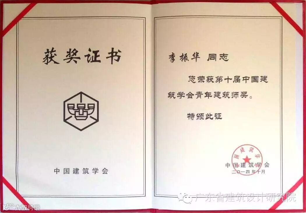 会上还颁发了学会2014年度中国建筑设计奖、科技进步奖、第十届青年建筑师奖、第六届建筑教育奖等。共有来自全国22个省、市、自治区的62名业界精英获奖,我院李振华同志荣膺第十届青年建筑师,在此表示祝贺!