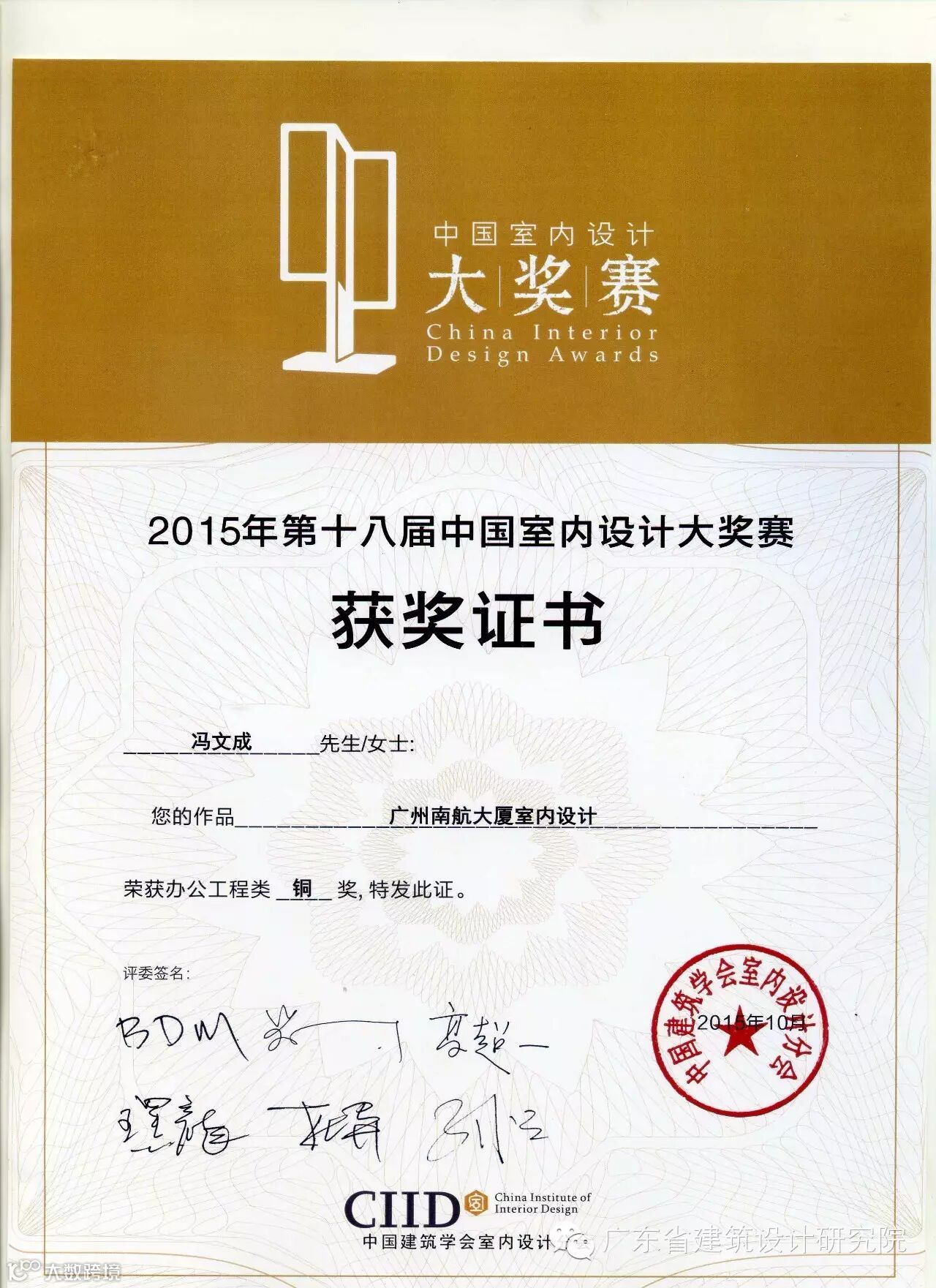 10月20日晚,第二届中国室内设计艺术周暨2015 CIID第二十五届(甘青)年会在金城兰州圆满落幕,2015年第十八届中国室内设计大奖作为该项活动的压轴大戏也隆重揭晓,我院项目《广州南航大厦室内设计》荣获办公工程类铜奖、《色即是空,空即是色》获得办公工程类优秀奖!