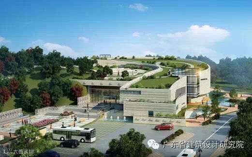 设计充分考虑与现有龟峰塔、恐龙博物馆以及龟峰公园环境的和谐统一。拟建河源博物馆采用曲线型设计,与山体及恐龙博物馆连为一体;主入口广场结合建筑入口采取中轴对称设计,形成入口前广场、雕塑广场、建筑入口广场等不同主题,各广场尺度适宜,文化内涵丰富,为市民提供了独具特色的参观场所。