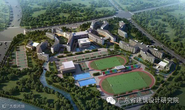 从化新区完全中学位于从化新城东部流溪河生态保护与休闲区,地块南侧为60米城市主干道新城大道,西侧为40米宽的城市干道河滨北路,北侧为30米宽的城市次干道,地块东南侧为流溪河及河流保护荔枝林。