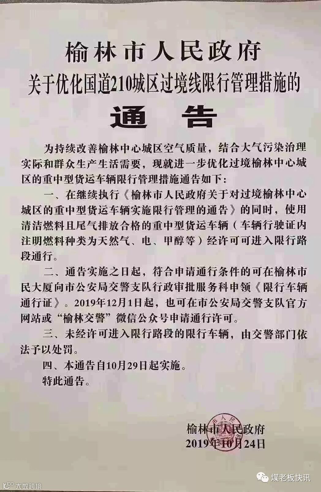 榆林限行管制通知:为持续改善榆林中心城区,结合大气污染治理实际和群众生产生活需要,现就进一步优化过境榆林中心城区的重中型货运车辆限行管理措施通告。