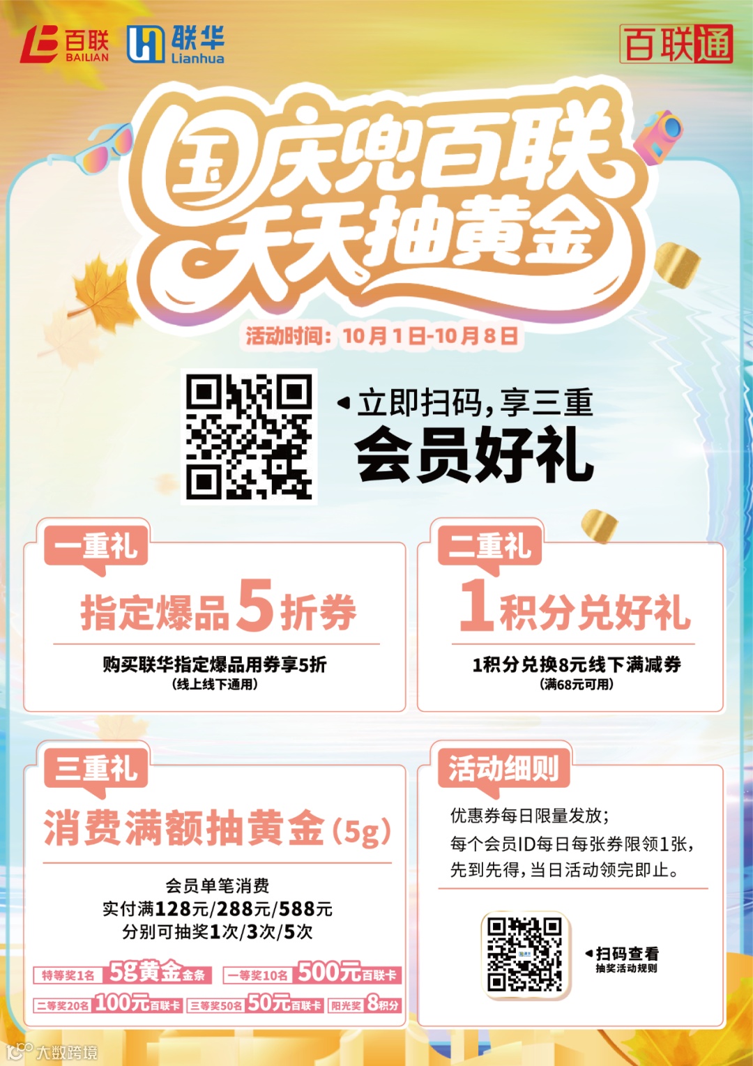 双节同庆,月满华诞丨联华为您带来超多节庆好物,更有超值福利活动等你参加!小伙伴们快来参与吧!!