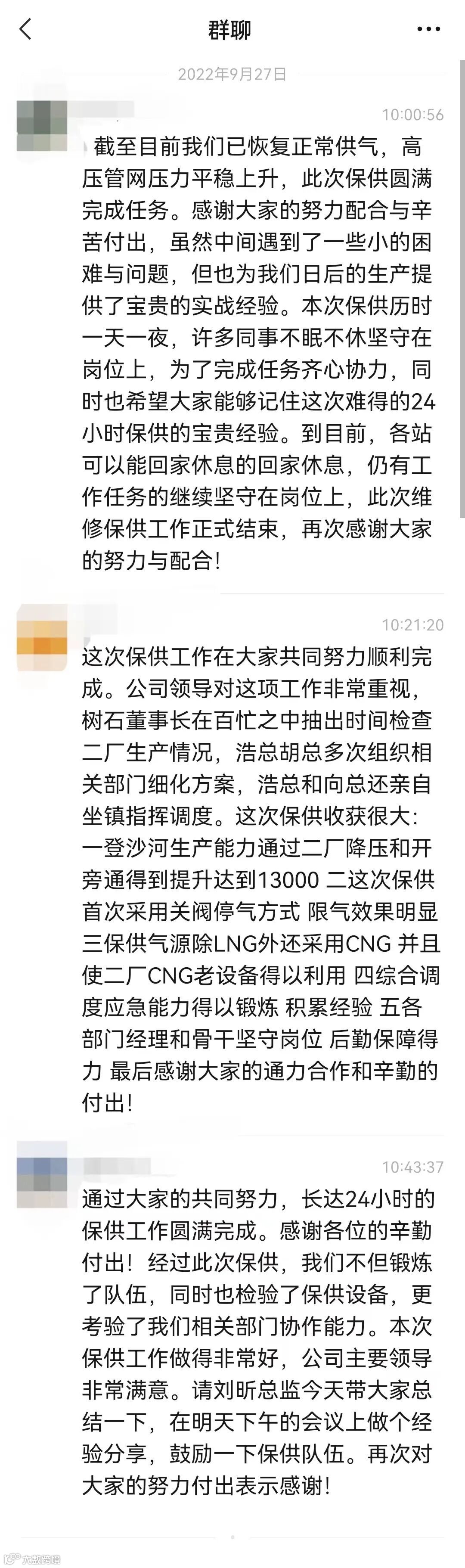 另一方面,在对下游用户供气流程和供气计划做好安排的同时,与重点用户反复沟通停气、限气事宜,全力做好用户用气解释、疏导工作,防范化解舆情风险。